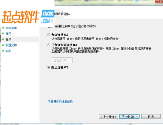 5、點(diǎn)擊阻止進(jìn)行連接,點(diǎn)擊下一步進(jìn)行快速的配置文件;