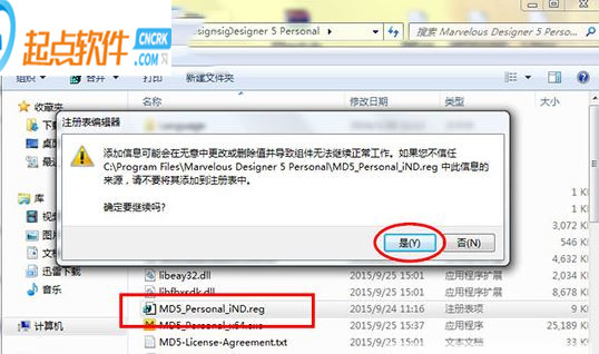 9、設(shè)置完畢后,將注冊文件夾中的文件“MD5_Personal_iND.reg”復(fù)制到軟件安裝目錄下,雙擊運(yùn)行點(diǎn)擊“是”寫入注冊信息;