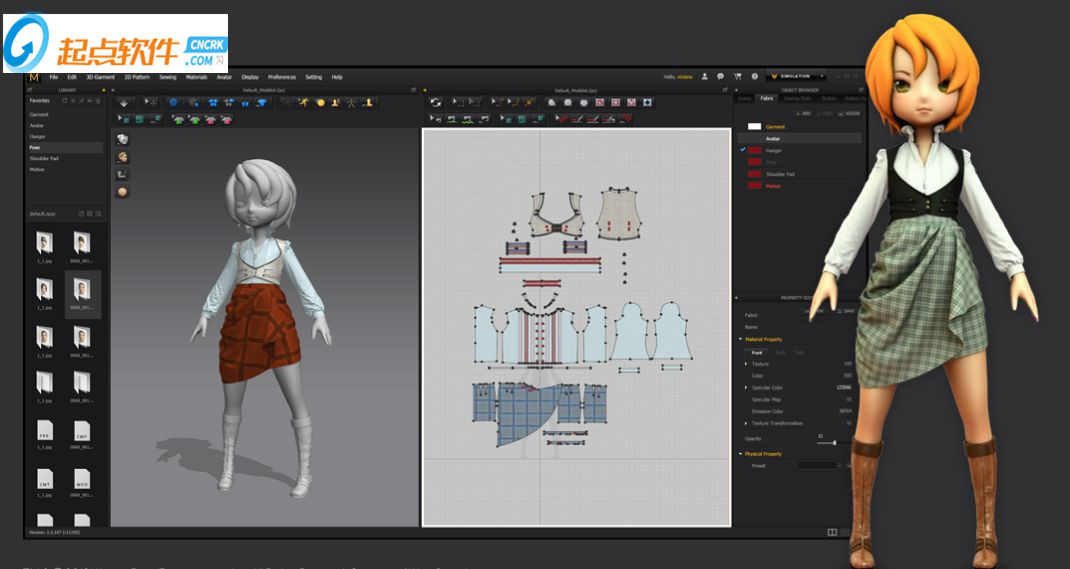 用戶可以通過圖庫的累積靈活使用各種面料以及其物理屬性和花紋,而且也可以方便的表現(xiàn)面料的折疊和褶皺,這樣可以大幅提高作業(yè)效率。