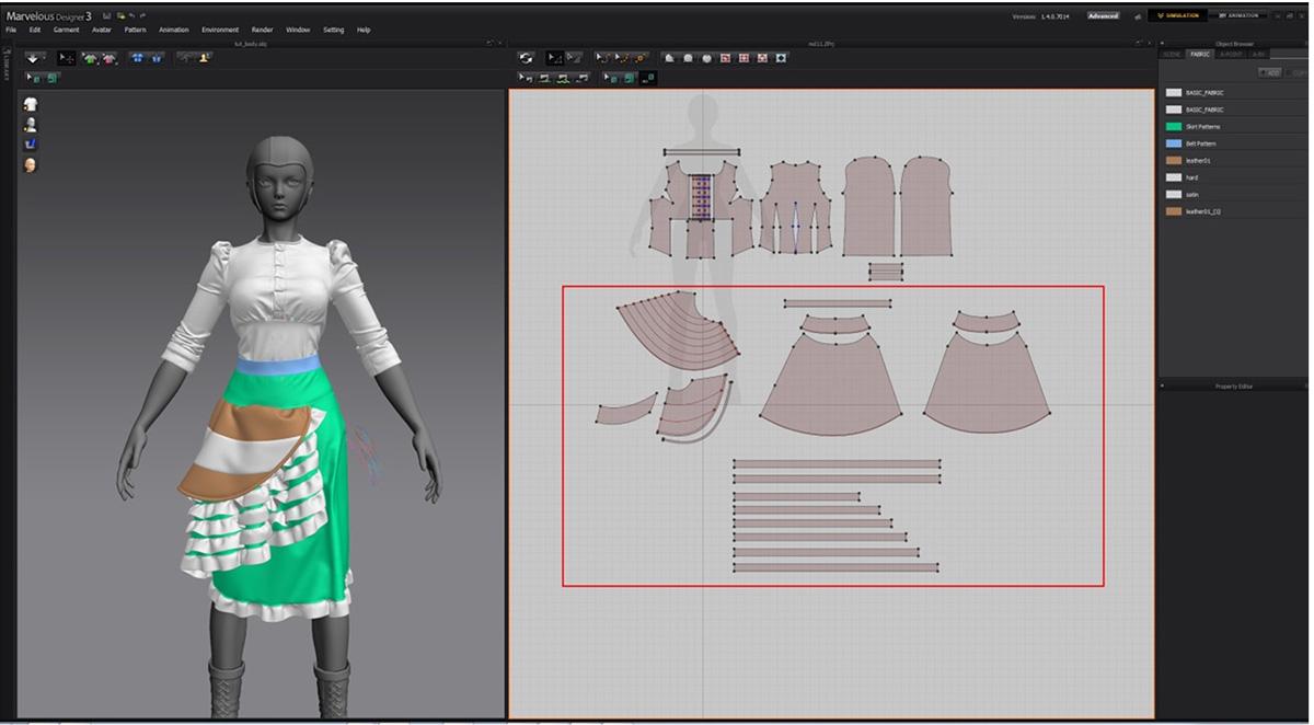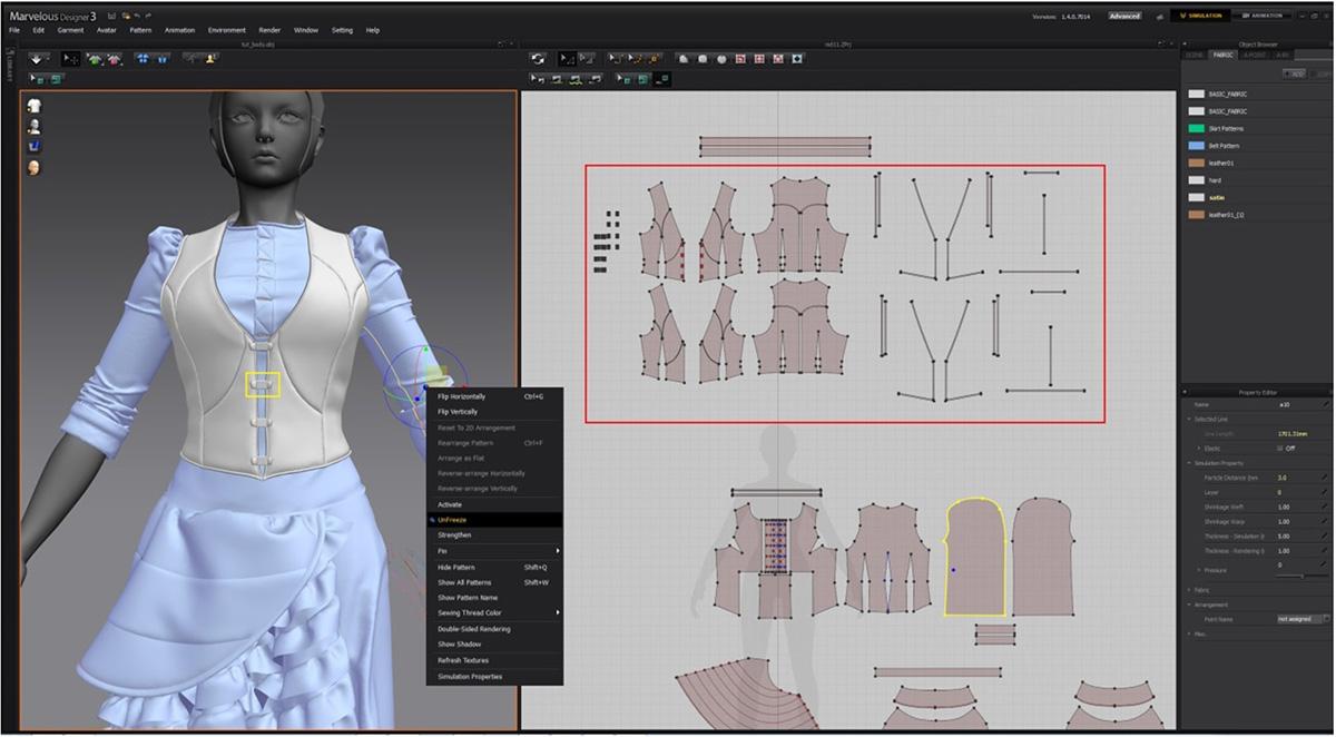 通過Marvelous Designer的安排點(diǎn)和固定針等直觀界面,可以方便的制作高水準(zhǔn)的虛擬服裝。