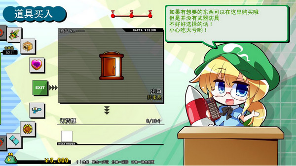 敵人掉落的道具可以立即裝備,河城荷取的身體接觸后就裝備上了。比如腳碰到了炮臺(tái),腳上就裝上向下射擊的炮臺(tái)。隨著裝備的增加荷取將成為巨大的移動(dòng)炮臺(tái),非常有趣。敵人的攻擊可以擊落荷取身上的裝備,如果沒裝備了就會(huì)被擊落,因此盡量不要空手狀態(tài)。