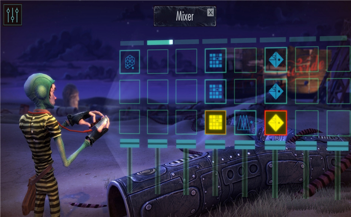 游戲中你裝備了一個聲音掃描儀,幫助你追蹤聲音。使用遙控的“機(jī)器球”的第一人稱攝像頭,迅速捕捉沙漠中的隱藏物體。你可以用帶有音量推桿和特效的便攜式全息音樂混音器,創(chuàng)建新的聲音組合。節(jié)拍游戲會為你的游戲庫增加一款美妙的享受。準(zhǔn)備加大你的音量,調(diào)暗你的燈光,享受這款風(fēng)格獨(dú)特的藝術(shù)作品吧。