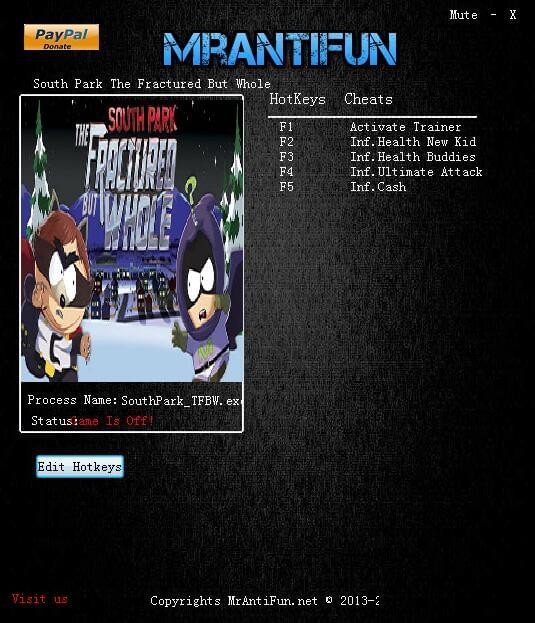 南方公園完整破碎四項修改器,由MrAntiFun制作,具備無限小屁孩/好友生命,無限金錢,無限終極攻擊等四項修改器功能,使用方便快捷需要的玩家朋友們可自行下載。【軟件特點】