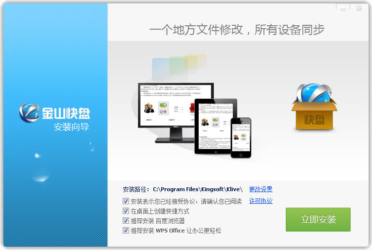 下載金山快盤(pán)客戶端,完成后進(jìn)行安裝,安裝過(guò)程很簡(jiǎn)單。