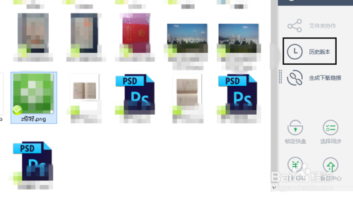 如圖所示,我們?cè)谶@個(gè)軟件的客戶端,選定這個(gè)z你好.png的文件,然后在界面的最右邊,有一個(gè)歷史版本的選項(xiàng),我們點(diǎn)擊這個(gè)選項(xiàng),有一個(gè)歷史版本,選擇要的版本。恢復(fù)即可
