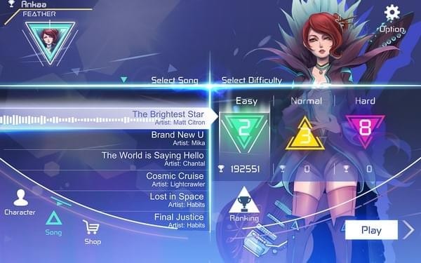 體驗(yàn)與別不同的節(jié)奏游戲﹗釋放音樂的純粹力量,于這個混合科幻和音樂劇節(jié)奏的游戲光榮地拯救地球吧﹗ Ankaa會傳送音符到你的螢?zāi)簧?,你需要依正確次序單按、撥動及長按來彈奏。【游戲背景】