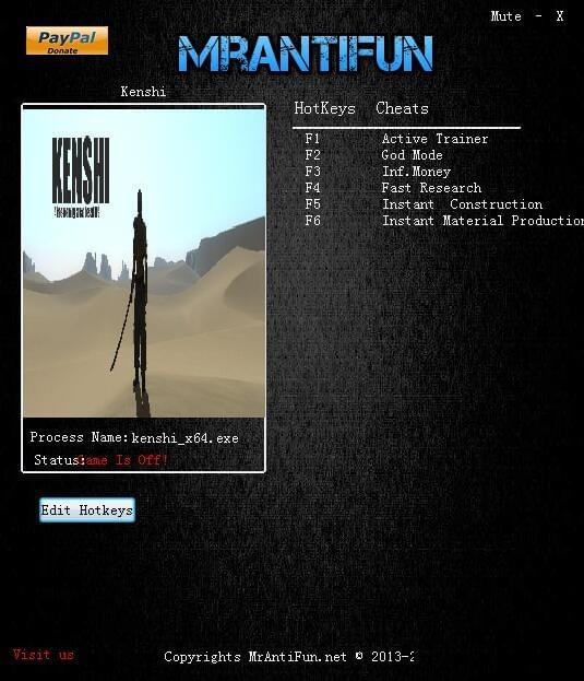 劍士Kenshi五項修改器,MrAntiFun制作,具備上帝模式,快速擊殺,無限金錢,快速材料生產(chǎn),即使建設(shè)等修改器功能,使用方便簡單需要的朋友可不要錯過了哦。