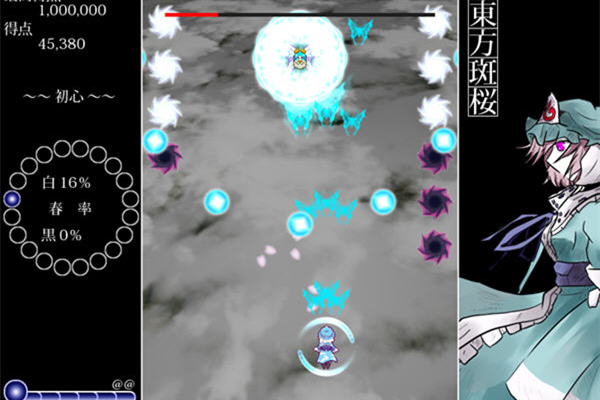 《東方斑櫻》是一款由日本獨(dú)立工作室制作發(fā)行的飛行射擊類游戲,這是一款超炫的彈幕游戲,也是《斑巫女》的續(xù)作,與之前的體驗(yàn)版一樣,該作使用了斑鳩系統(tǒng)的彈幕STG,不過不太相同的是,這一款作品更注重于直接吸收,也可以說是一種“STG方式的解密”。游戲主角西行寺幽幽子,她在黑白兩色之間與敵人戰(zhàn)斗,快節(jié)奏的模式讓你雙手顫抖!【游戲玩法】