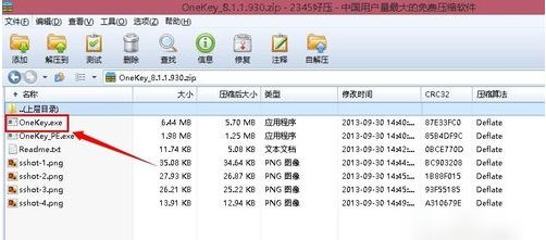 2、下載好后就如下圖所示:點擊【OneKey.exe】文件就可能運行此工具了。