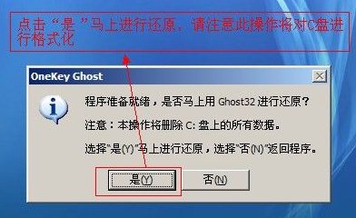 6、點擊“是”馬上進(jìn)行還原,請注意本操作將對C盤進(jìn)行格式化