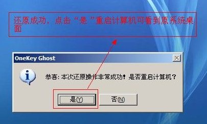 8、還原成功,點擊“是”重啟計算機(jī)進(jìn)入原系統(tǒng)桌面