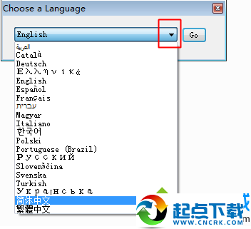3、彈出這個小對話框,點擊下拉框,選擇“簡體中文”,然后點擊Go打開;