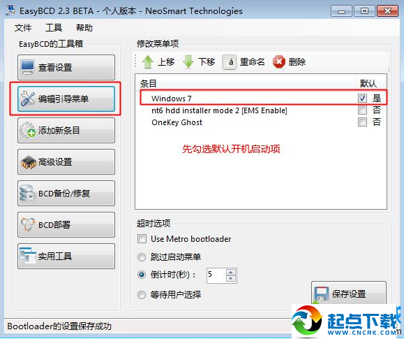 4、點擊【編輯引導(dǎo)菜單】,先勾選默認(rèn)的系統(tǒng),比如Windows7;