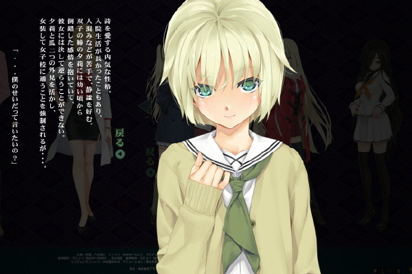 《美少女萬華鏡》是由ωstar公司制作的系列超自然學(xué)風(fēng)格18X AVG游戲,該系列游戲目前已推出3部正篇和1部外傳,幾乎每一作上市都受到廣大宅男們的熱捧。不久前官方公布了第4部正篇《美少女萬華鏡-罪與罰的少女-》并介紹了劇情和角色。男主角覡夕摩是一個(gè)雙馬尾可愛的男孩子,體弱多病性格內(nèi)向,但是對姐姐抱有著禁 忌的感情所以無法反抗姐姐。姐姐是引退的偶像,對弟弟有控制欲并且強(qiáng)迫其穿女裝上學(xué)。【游戲劇情】