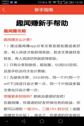1)通過趣聞賺app分享文章至朋友圈或者好友,有人閱讀才能獲得獎(jiǎng)勵(lì),若該文章被好友轉(zhuǎn)發(fā),有人閱讀仍然能獲得獎(jiǎng)勵(lì);2)只有分享到微信、朋友圈、qq和QQ空間,且是手機(jī)訪問才會計(jì)費(fèi)哦;