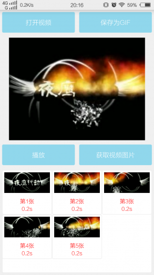 GIF圖片的原理是若干圖片有序地播放,讓人感覺畫面在動(dòng),因此您需要添加幾張有順序有規(guī)律的圖片,先選擇視頻,然后播放,點(diǎn)擊 獲取視頻圖片 按鈕可以獲取該時(shí)刻的視頻截圖,點(diǎn)擊圖片可以設(shè)置該圖片的持續(xù)時(shí)間和移除該圖片