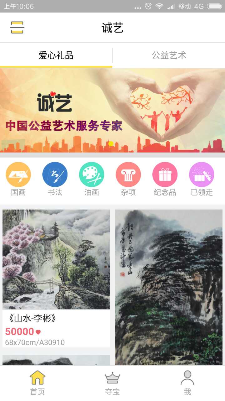 誠藝,最具創(chuàng)新的公益藝術服務平臺,是聯(lián)手藝術界、慈善界,共同打造的公益藝術APP,為藝術家提供藝術品展示和藝術品義賣,并實時對接公益項目,將有效填補目前公益事業(yè)網(wǎng)絡化、快速化以及透明化的空白。【軟件特點】