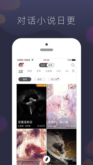 懸疑、玄幻、科幻、言情、驚悚、二次元、內(nèi)涵段子,人人都可創(chuàng)作,人人都是作家,快來分享你的對(duì)話小說吧!