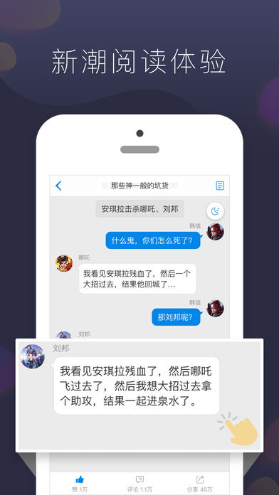 在這里,前所未有沉浸式閱讀體驗(yàn),讀小說就像聊天一樣輕松有趣;