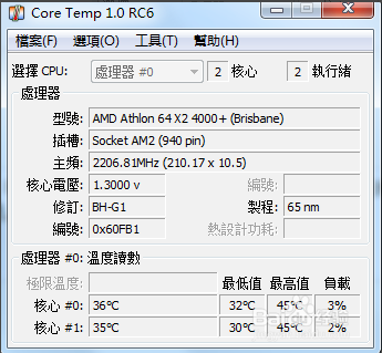 朋友的AMD5600+用2個版本的CoreTemp測得的溫度差別很大(2張圖是連續(xù)運(yùn)行時截的,間隔不超過30秒)