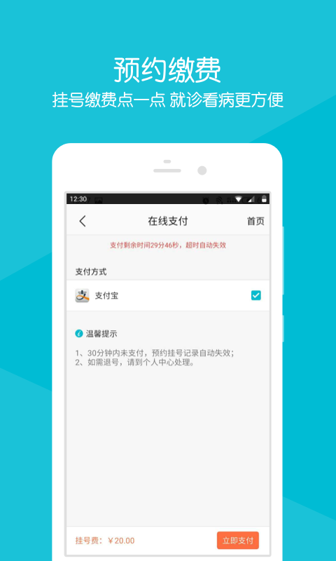 預(yù)約掛號:可根據(jù)科室、專家在客戶端自由進行門診預(yù)約預(yù)約繳費:掛號繳費點一點 就診看病更方便