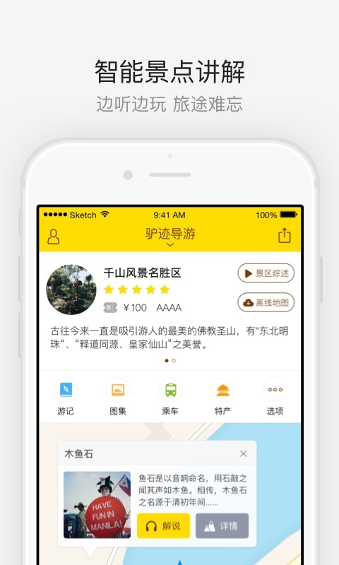 語音導(dǎo)游:專業(yè)導(dǎo)游景點(diǎn)講解,邊看邊聽景點(diǎn)故事。手繪地圖:為景區(qū)定制手繪地圖,讓您輕松看懂,永不迷路。