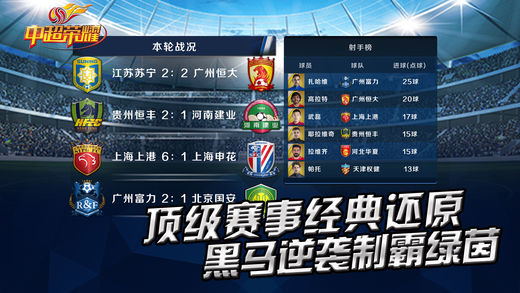 《中超榮耀》是由中超聯(lián)賽正版授權(quán)、體育之窗和掌上縱橫聯(lián)合發(fā)行的足球策略類手游。