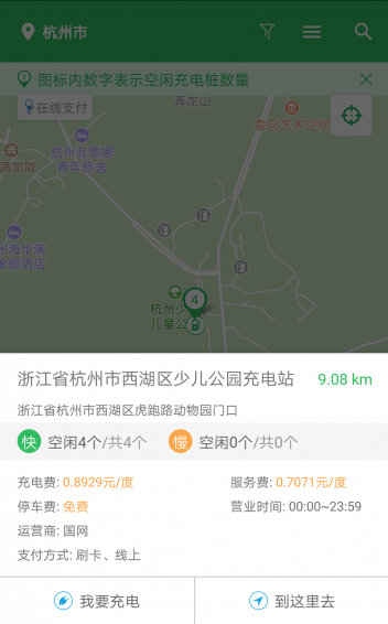 浙江省電動(dòng)汽車(chē)充電設(shè)施信息服務(wù)的便民軟件,讓您的手機(jī)隨時(shí)隨地快速查找充電站點(diǎn)位置,實(shí)時(shí)查詢(xún)快慢充電接口數(shù)量及空閑數(shù)量,在線導(dǎo)航前往充電站點(diǎn),點(diǎn)評(píng)充電過(guò)程體驗(yàn)。