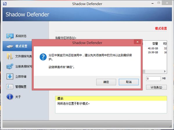 可以設(shè)置一個(gè)分區(qū)為影子模式,可以是系統(tǒng)分區(qū)和其它分區(qū),進(jìn)入此模式后,你對(duì)此分區(qū)上所做的任何改動(dòng)都會(huì)在重啟后失效,即使你在測(cè)試一個(gè)病毒。Shadow Defender 的不同之處在于支持排除與轉(zhuǎn)儲(chǔ)功能。你可以把處于影子模式中的文件或文件夾置入排除列表,那么你的所有更改將被保存到原始分區(qū)。