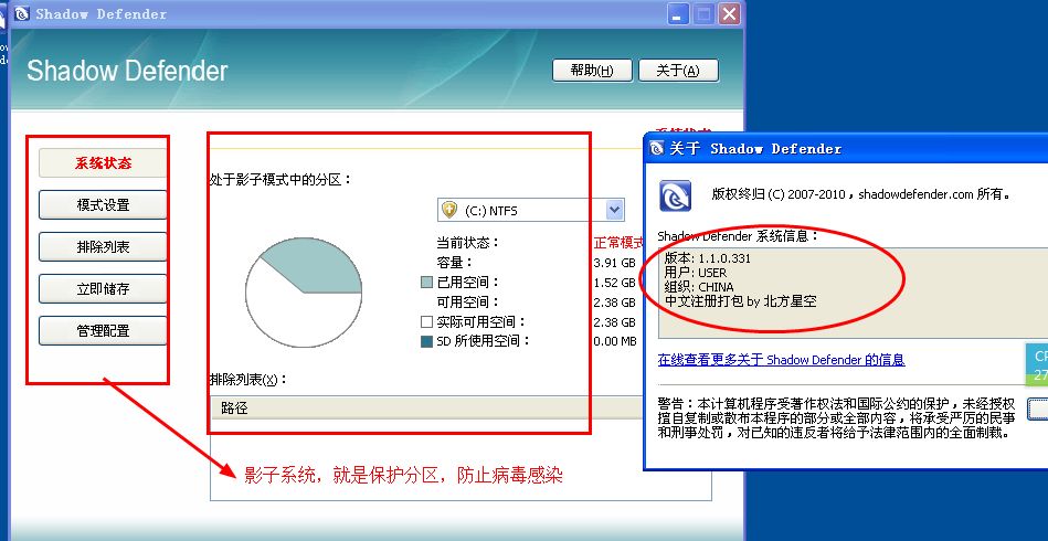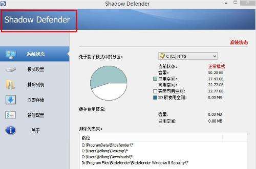影子衛(wèi)士(Shadow Defender)是一款體積小巧卻功能強(qiáng)大的系統(tǒng)還原、保護(hù)程序,支持多分區(qū),支持轉(zhuǎn)儲(chǔ),支持排除,工作原理類(lèi)似于沙盤(pán)軟件的輕量級(jí)系統(tǒng)保護(hù)工具。它的不同之處在于支持排除與轉(zhuǎn)儲(chǔ)功能,可以把處于影子模式中的文件或文件夾置入排除列表,所有更改將被保存到原始分區(qū)。它占用系統(tǒng)資源極低。關(guān)閉進(jìn)程后保護(hù)依然有效,特別是在轉(zhuǎn)儲(chǔ)和排除方面勝人一籌!