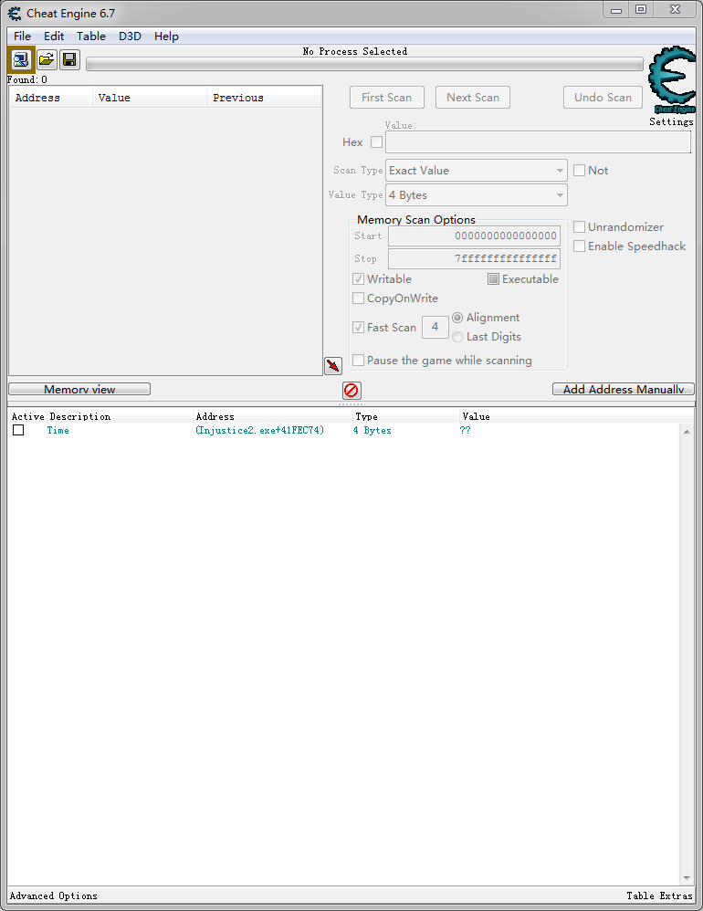 啟動CE(Cheat Engine)點(diǎn)擊左上角的【一個放大鏡一個電腦】的圖標(biāo),就是讀取查找當(dāng)前進(jìn)程然后找到你想要作弊的游戲的進(jìn)程,雙擊或者點(diǎn)一下按open就讀取成功了