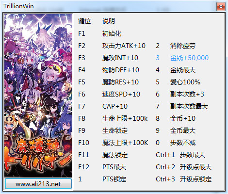 F1 初始化F2 攻擊力ATK+10