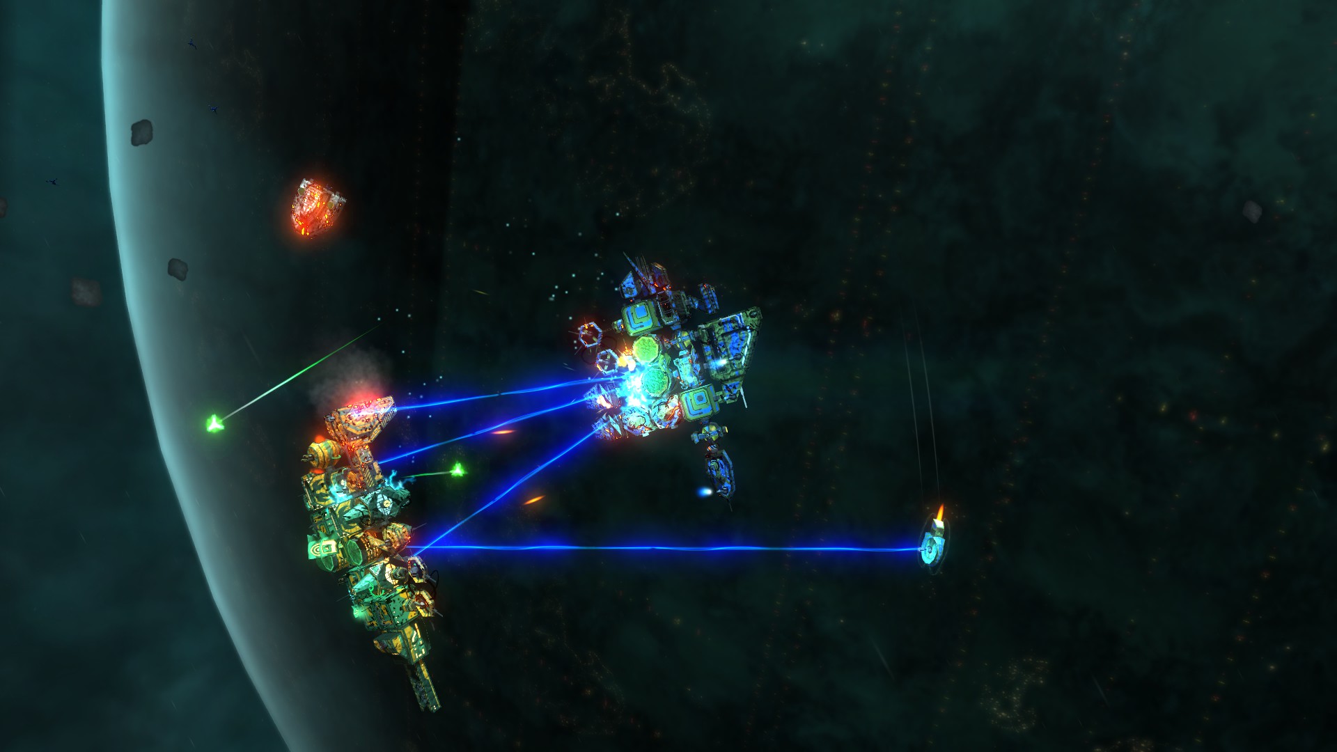 戰(zhàn)略造船。零件的質(zhì)量、位置和形狀。如果一個部分阻止一個炮塔,它不會開火。如果一艘船太長,它會慢慢地變慢。太多的引擎意味著武器的力量太少。每一個設(shè)計選擇計數(shù)。