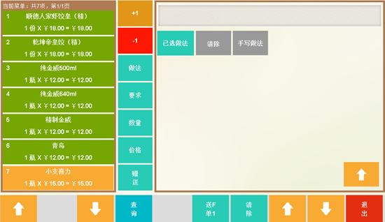 傳菜管理功能:可以設(shè)置廚房打印機自動打印傳菜單,上菜時傳菜員用于手工劃菜用。如廚房傳菜間放電腦的情況下,在配菜監(jiān)視中可以指定哪個菜由哪個廚師制作,以便于統(tǒng)計廚師工作量;在配送監(jiān)視中可以靈活分配傳菜員所傳的菜品,便于統(tǒng)計傳菜員工作量等功能。