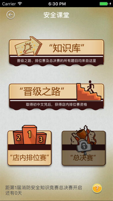 安全課堂:通過在線答題的方式,幫助用戶學習消防知識,同時用戶可以參加消防部門組織的消防知識競賽;隱患快拍:對身邊的消防隱患隨手拍照,并提供給消防管理部門;