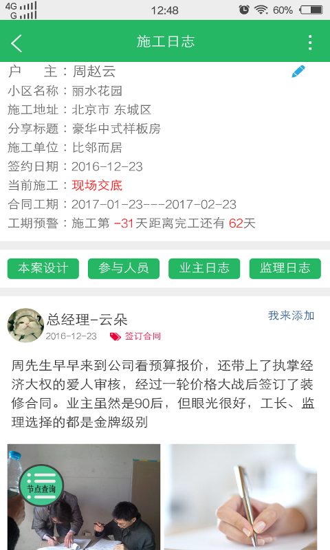 【家裝計(jì)算器】愛(ài)裝修計(jì)算器是為裝修公司量身定制的收單獲客工具,業(yè)主通過(guò)計(jì)算器查看報(bào)價(jià)的同時(shí),裝修公司就能準(zhǔn)確了解業(yè)主的裝修需求,并給業(yè)主提供有效的咨詢服務(wù),促進(jìn)成交。計(jì)算器能設(shè)置專屬預(yù)算報(bào)價(jià),可編輯簡(jiǎn)裝、精裝、整裝報(bào)價(jià),計(jì)算器可與施工日志、黃頁(yè)網(wǎng)交互營(yíng)銷,展示施工案例和公司詳情。【施工日志】愛(ài)裝修施工日志是裝修行業(yè)最專業(yè)的工地營(yíng)銷管理系統(tǒng),全員都可以參與施工日志的完善,圖文并茂的展示施工工藝,更有效、更全面的展現(xiàn)裝修公司的細(xì)節(jié)與價(jià)值,施工日志可在線上分享并生成二維碼,為裝修公司、材料商家?guī)?lái)客戶并留住客戶。其中的業(yè)主評(píng)價(jià)功能可以增強(qiáng)施工日志的可信度,為用戶塑造良好的口碑。施工日志可與計(jì)算器、黃頁(yè)網(wǎng)交互營(yíng)銷。