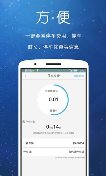 [方便]一鍵查看停車費用、停車時長、停車優(yōu)惠等信息![快捷]進(jìn)出車場不停車,尊享駕車VIP體驗!