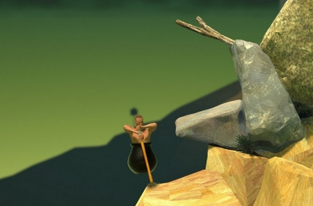 1、玩家控制一個(gè)坐在似乎是缸里的人,用一把榔頭不斷往上爬,操作極其簡(jiǎn)單;