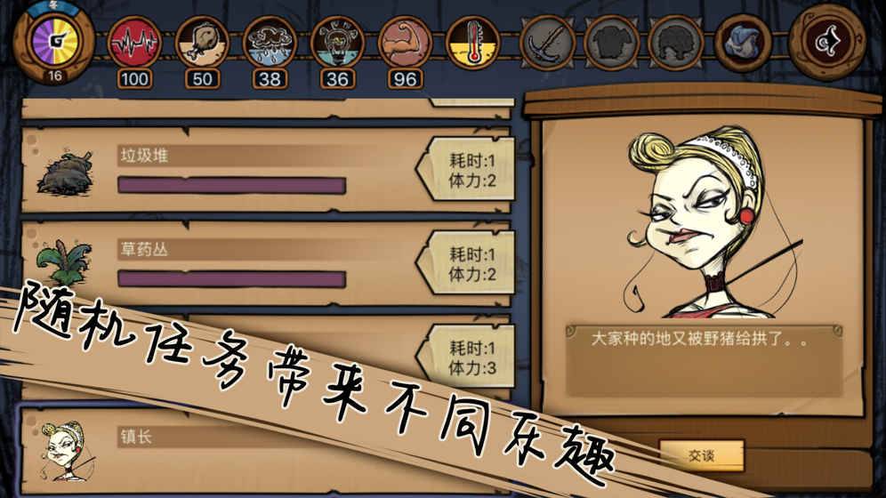 荒原是一款以文字冒險(xiǎn)為主的角色扮演類生存游戲。游戲中,玩家將扮演一名冒險(xiǎn)者,為了生存下去,你需要探索危險(xiǎn)的荒原,尋找食物、裝備、資源,前往集市交易物品,完成有趣的隨機(jī)任務(wù)。