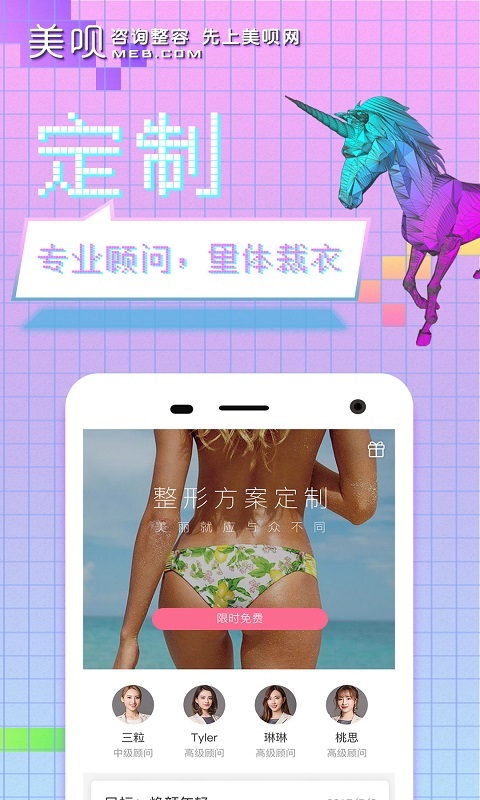 免費(fèi)匹配專屬顧問,提供醫(yī)美一站式服務(wù)上美唄APP—找攻略、約名醫(yī)、享優(yōu)惠、送保險(xiǎn)、有分期