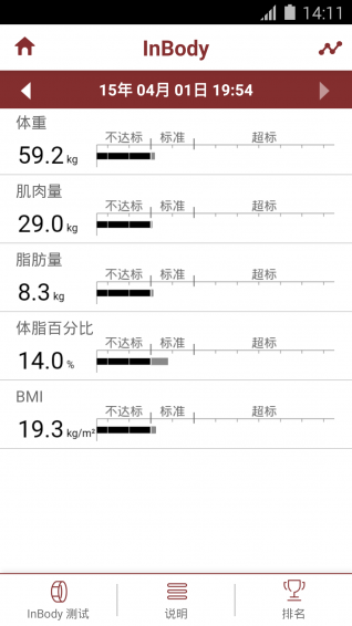 主頁面板顯示InBody、運(yùn)動(dòng)等各個(gè)項(xiàng)目的主要指標(biāo),易上手好操作。