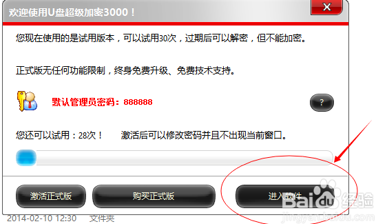 打開軟件后沒(méi)有正確密碼無(wú)法進(jìn)入軟件的主界面和使用U盤和移動(dòng)硬盤的加密和解密功能。
