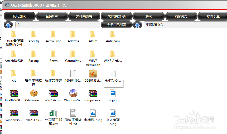 進(jìn)入軟件界面后在左邊能看到你的u盤文件,右邊則是加密區(qū)。