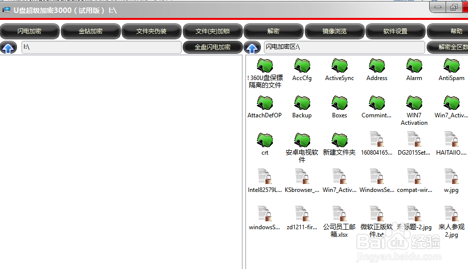 加密完之后 你在u盤看到的文件是隱藏的 ,看不見你的文件了,只有再次運(yùn)行軟件解密之后就能看見了。