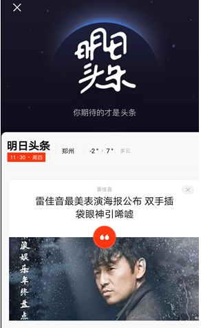 明日頭條則是新浪新聞客戶端給用戶提供的一個期待性閱讀入口。