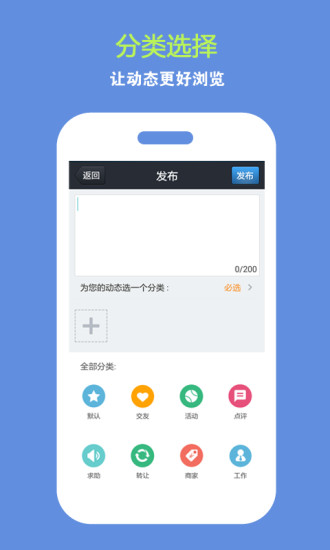 首頁動(dòng)態(tài),附近生活隨時(shí)知道。分類選擇,讓動(dòng)態(tài)更好瀏覽。
