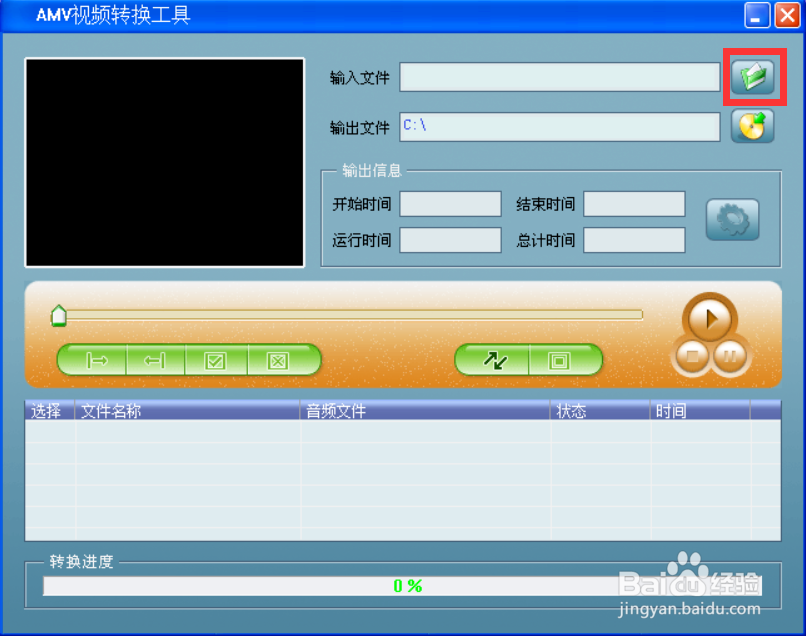 進入AMV界面,單擊輸入文件欄右側(cè)方單擊“文件夾”小圖標,彈出打開文件窗口,找到需要轉(zhuǎn)換的視頻后,選中,單擊“打開”: