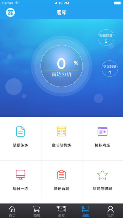 視頻學(xué)習(xí):名師授課、專家輔導(dǎo),講解全面、重點(diǎn)突出,并對不同能力的,學(xué)員推出不同套包課程沖刺課程。藥考啦視頻課程權(quán)限與藥師在線官網(wǎng)一致。通過藥考啦注冊的用戶,將贈送高級精品班7天免費(fèi)課程;題庫練習(xí):海量仿真試題供大家練習(xí),藥考啦與藥師在線官網(wǎng)的試題同步。同時針對移動學(xué)習(xí)的特點(diǎn),提供了隨便練練、章節(jié)練習(xí)、模擬考場等功能,適應(yīng)不同的學(xué)員;