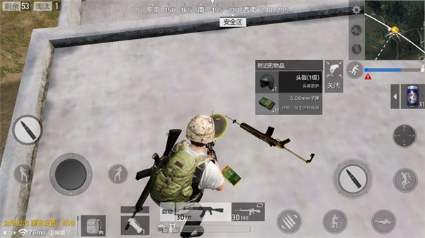 藍(lán)色范圍為毒氣區(qū),白色區(qū)域?yàn)榘踩珔^(qū),玩家需要不斷的移動(dòng),到達(dá)安全區(qū)域從而獲得比賽的勝利。