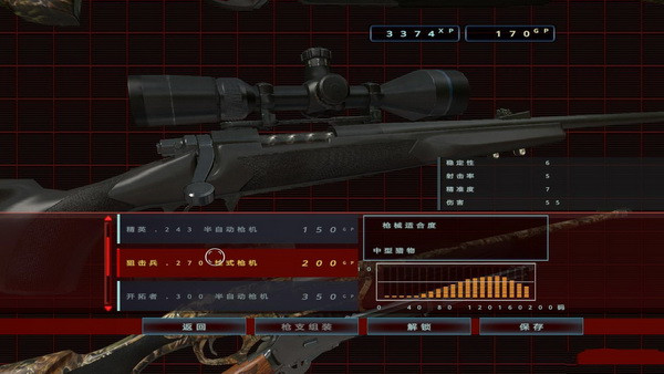 任務(wù)中可獲得XP點(diǎn)和GP點(diǎn),使用GP,可以解鎖新的狙擊槍?zhuān)梢陨?jí)槍的穩(wěn)定度和精準(zhǔn)度,XP表示經(jīng)驗(yàn)點(diǎn)數(shù),會(huì)解鎖生涯模式中的新獵物出來(lái)。